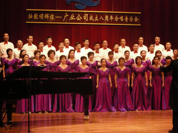 2008年9月23日下昼,《壮赞美绚烂》--广业公司建设八周年暨国庆59周年合唱音乐会以壮丽的歌声,以合唱角逐的形式,在金碧绚烂的星海音乐厅顺遂举行。广业公司向导,各一级企业向导班子成员及400多名员工,寓目了演出。全系统12个代表队演员人数近500人纷纷登台献艺,一阵阵嘹亮的歌声引起了如潮的掌声,各参赛选手均以自己最优美的歌声,汇合成大合唱,表达对祖国的无限祝福和赞美,整个时势气焰恢弘,热潮迭起,演员们声情并茂的演出,赢得了观众的阵阵喝彩。
